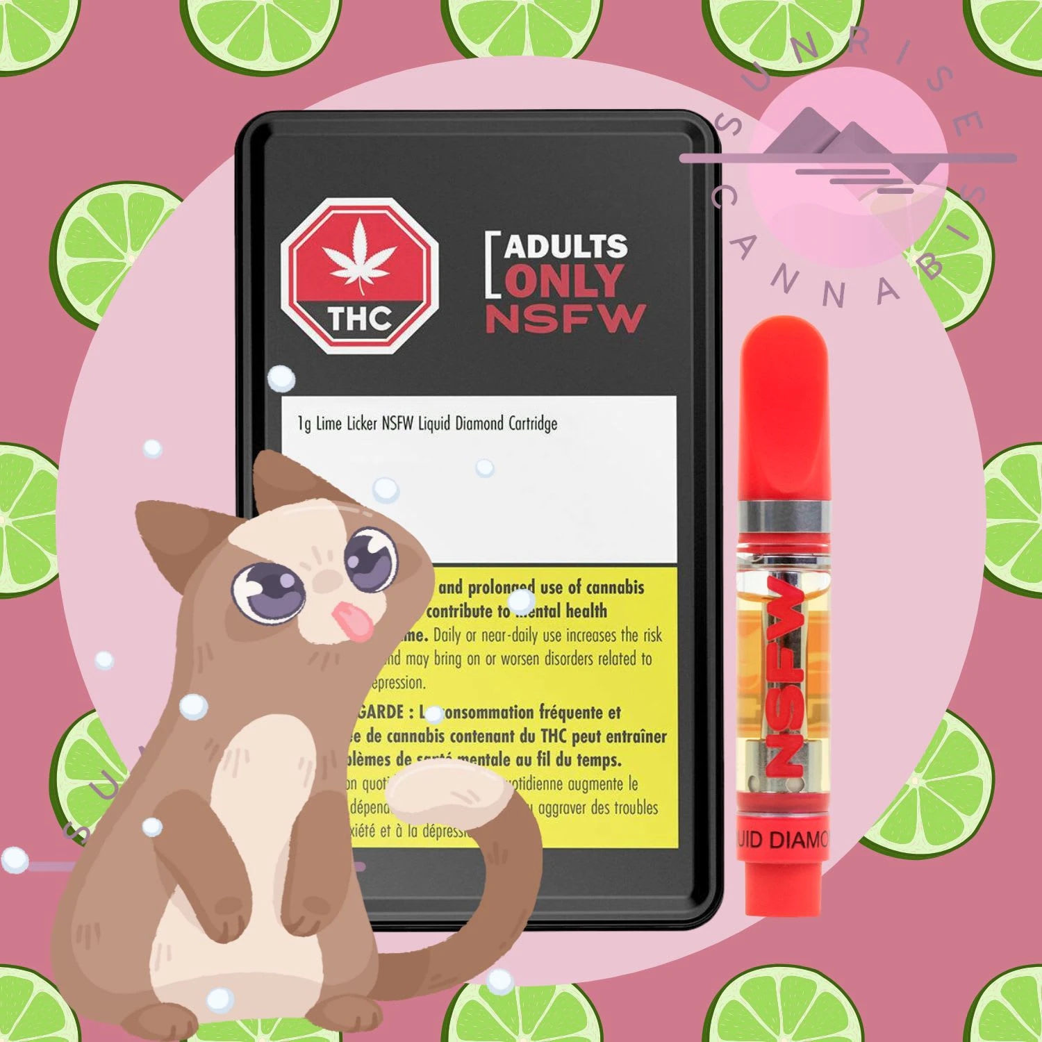 VAPE CARTRIDGE - HYBRID - LIQ DIAMONDS - 1G Lime Licker NSFW Liquid Diamond vapes from Adults Only are crisp and cool. This sativa 510-thread vape delivers lime flavour with a smooth minty finish. Packed with liquefied THC diamonds for potency.