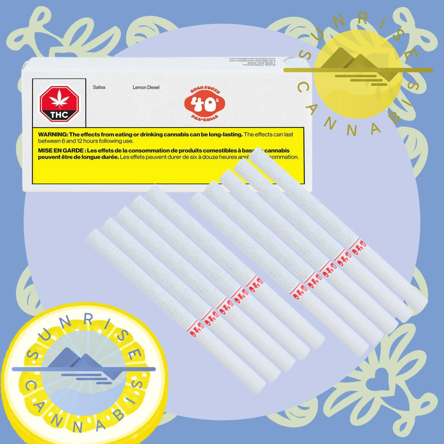 Explore the Back Forty with their Lemon Diesel slim pre-rolls. A cross between California Sour and Lost Coast OG, Lemon Diesel is a potent sativa-dominant cultivar with a profile of bright citrus and heavy fuel. Terpenes include limonene, beta-myrcene, and beta-caryophyllene. Whole flower and machine-rolled to perfection, packed in a resealable tray.