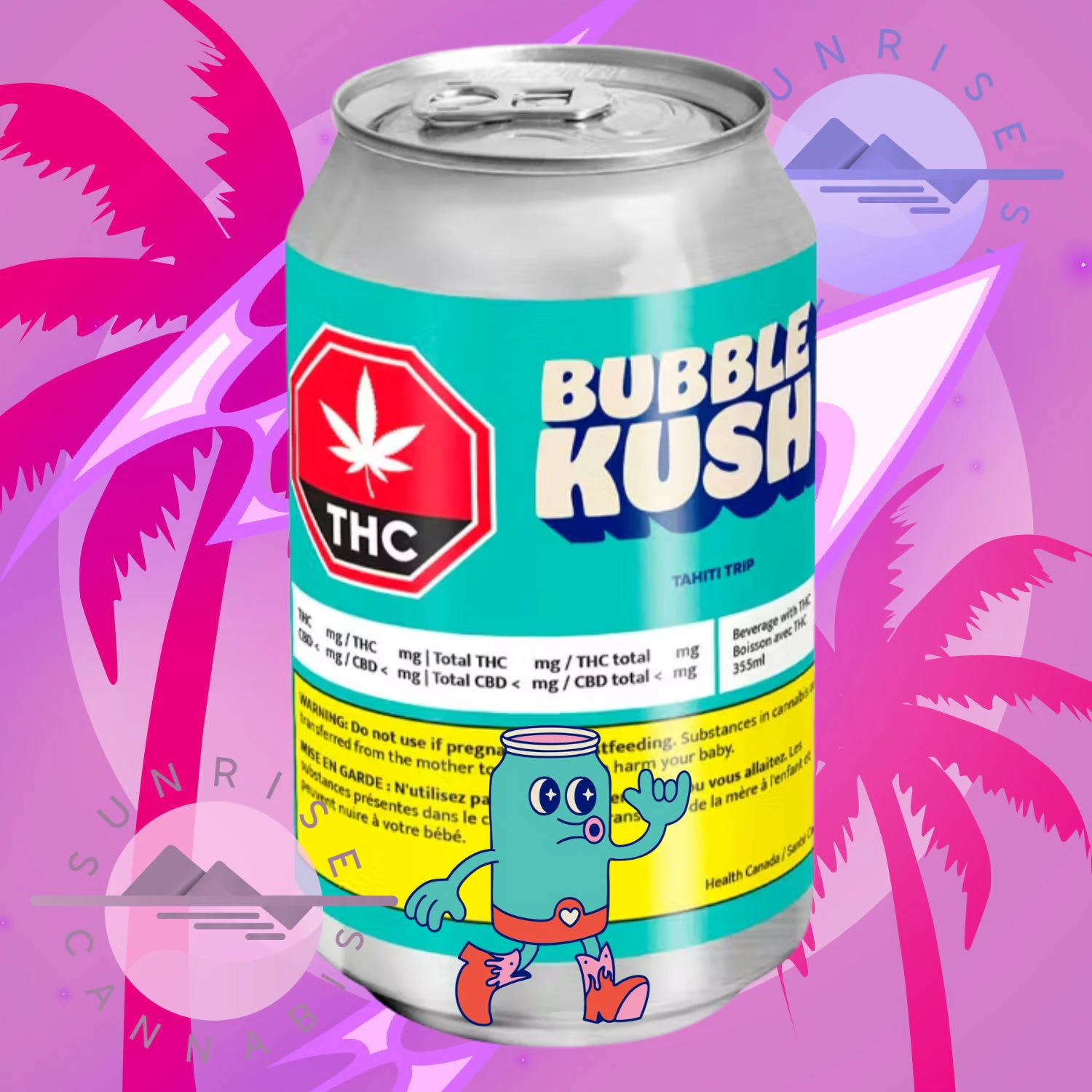 Nostalgic Tahiti Trip soda is infused with 10mg of THC with a perfect OG tropical punch taste. Enjoy it ice cold—with floating fruit or straight from the can. Bubble Kush is a 100% Canadian brand. Taste tested by Canadians and perfected for Canadians.