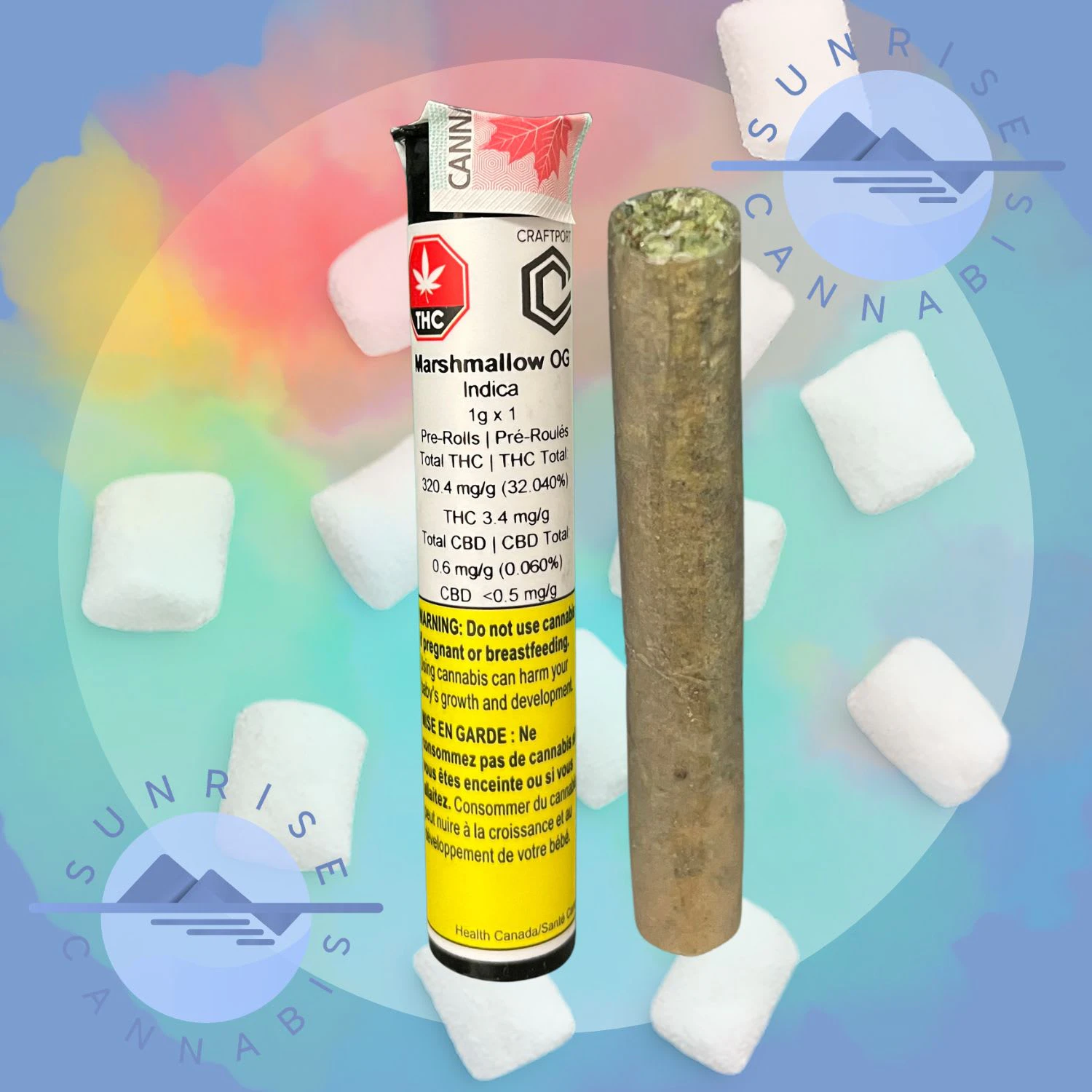 Craftport's 1g straight-cut pre-rolls feature lineage from Chemdog, Triangle OG, and Jet Fuel Gelato, coming together in Marshmallow OG.