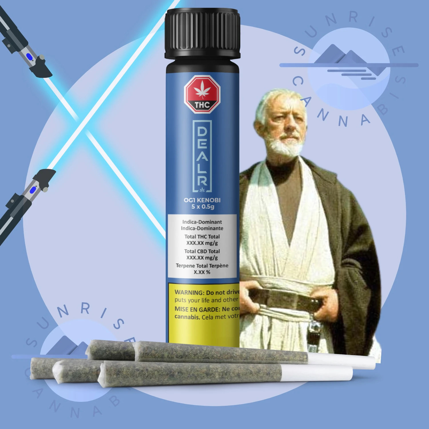 A name whispered across the star system, OG1 Kenobi is an indica-dominant force born of Skywalker OG and Baby Yoda. Classic OG gas meets citrus peel with an upper-class Kushy backdrop. Packed with care by skilled hands, each pre-roll burns smooth and even, carrying a terp-heavy punch from a galaxy not so far away.