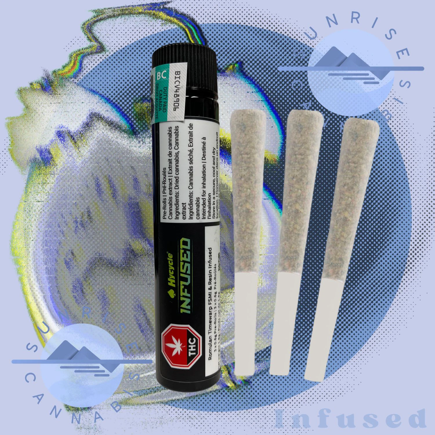 Hycycle Romulan Timewarp is a double-infused pre-roll crafted with BC-grown flower, live resin, and full spectrum micronized diamonds (FSMI) for a true-to-cannabis experience. The inputs are ground and blended into a uniform mix to ensure smooth burns and consistent potency.