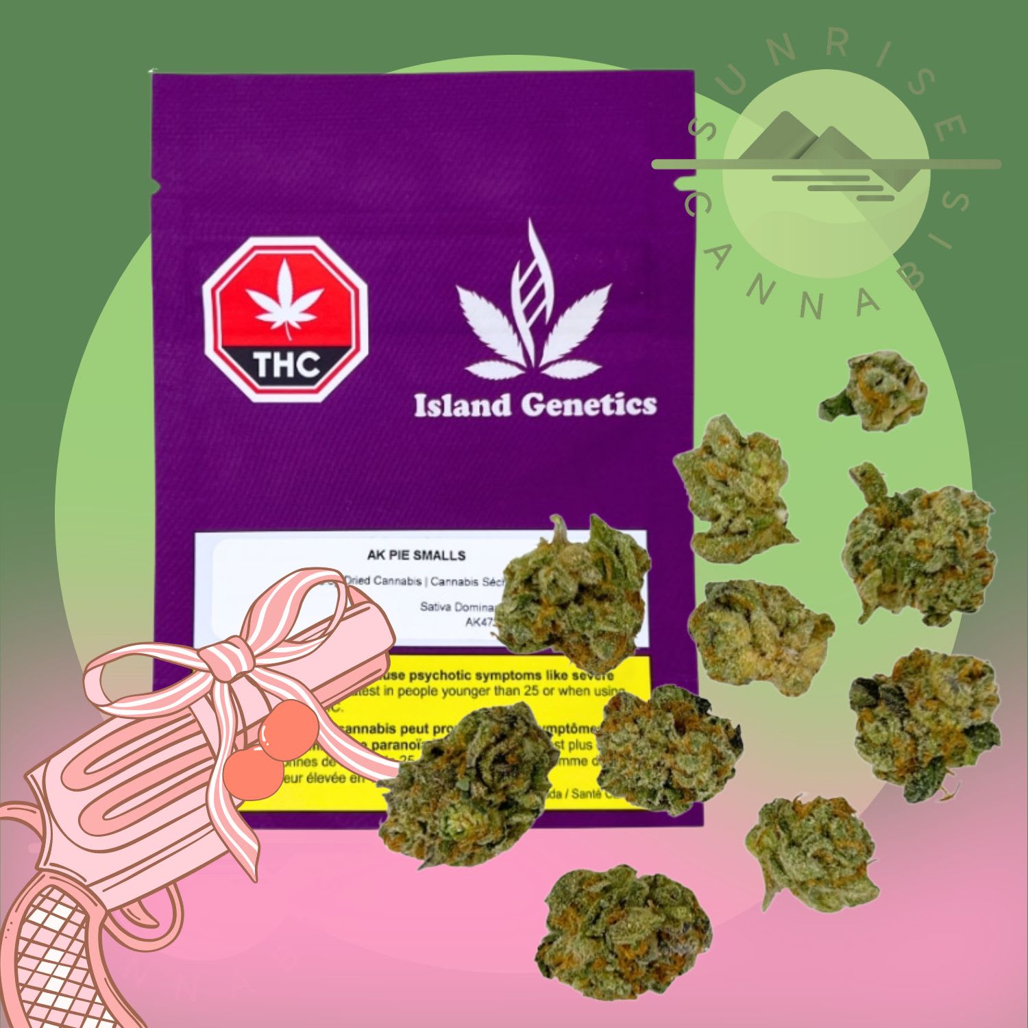 AK Pie is a sativa dominant hybrid bred from AK-47 and Cherry Pie. The aroma and flavour combine sour fruit and gas with layered notes of raspberry, cranberry, guava, earth, and diesel, creating a balanced profile that blends sweetness with deep fuel tones.