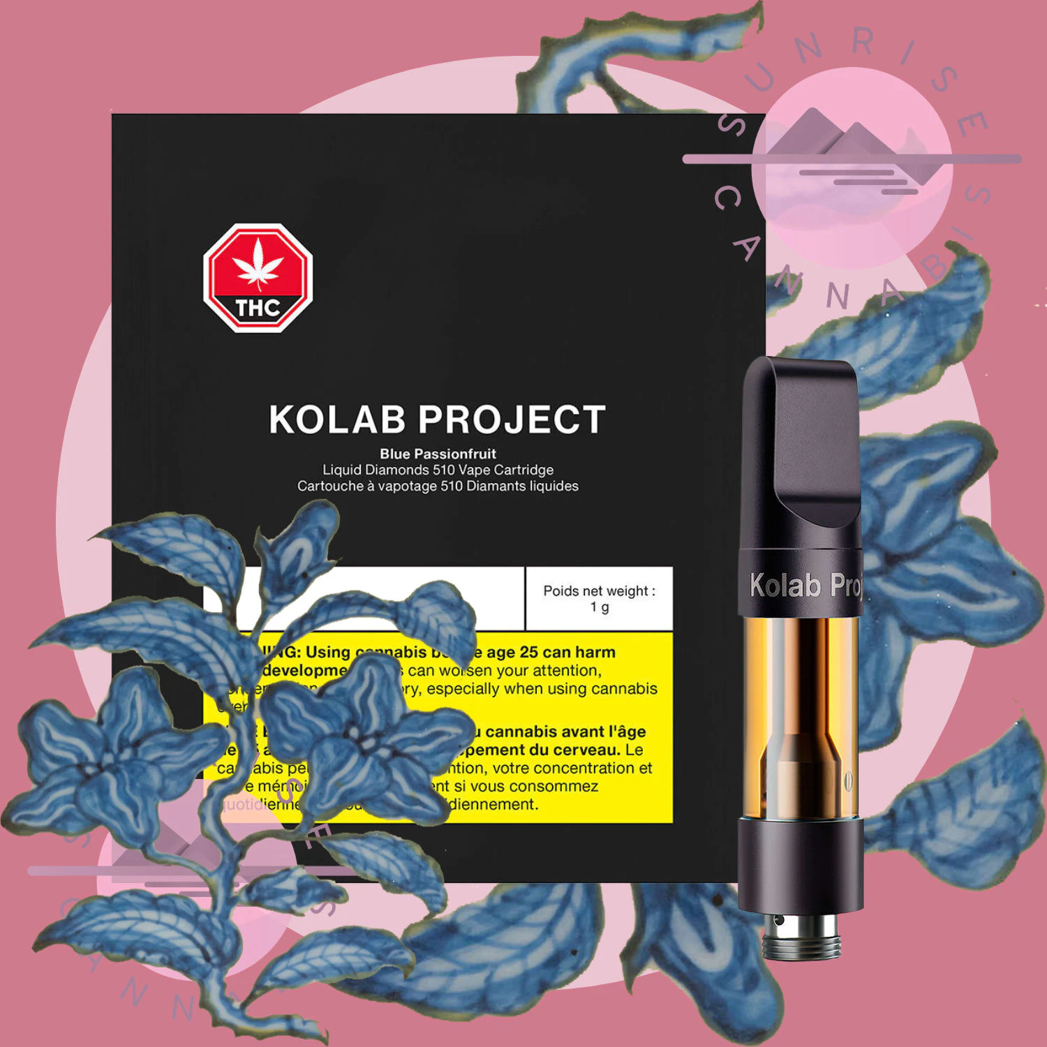 Kolab Project Blue Passionfruit Diamonds 510 carts combine potent liquid diamonds with flavouring agents, delivering a vibrant passionfruit and blueberry profile. Expect an intense berry-tropical punch driven by terpineol, limonene, and caryophyllene. A ceramic atomizer, stainless-steel coil, tuned saturation ports, and stainless vent tube ensure smooth airflow, consistent hits, and steady flavour, finished with a sleek black brass mouthpiece.