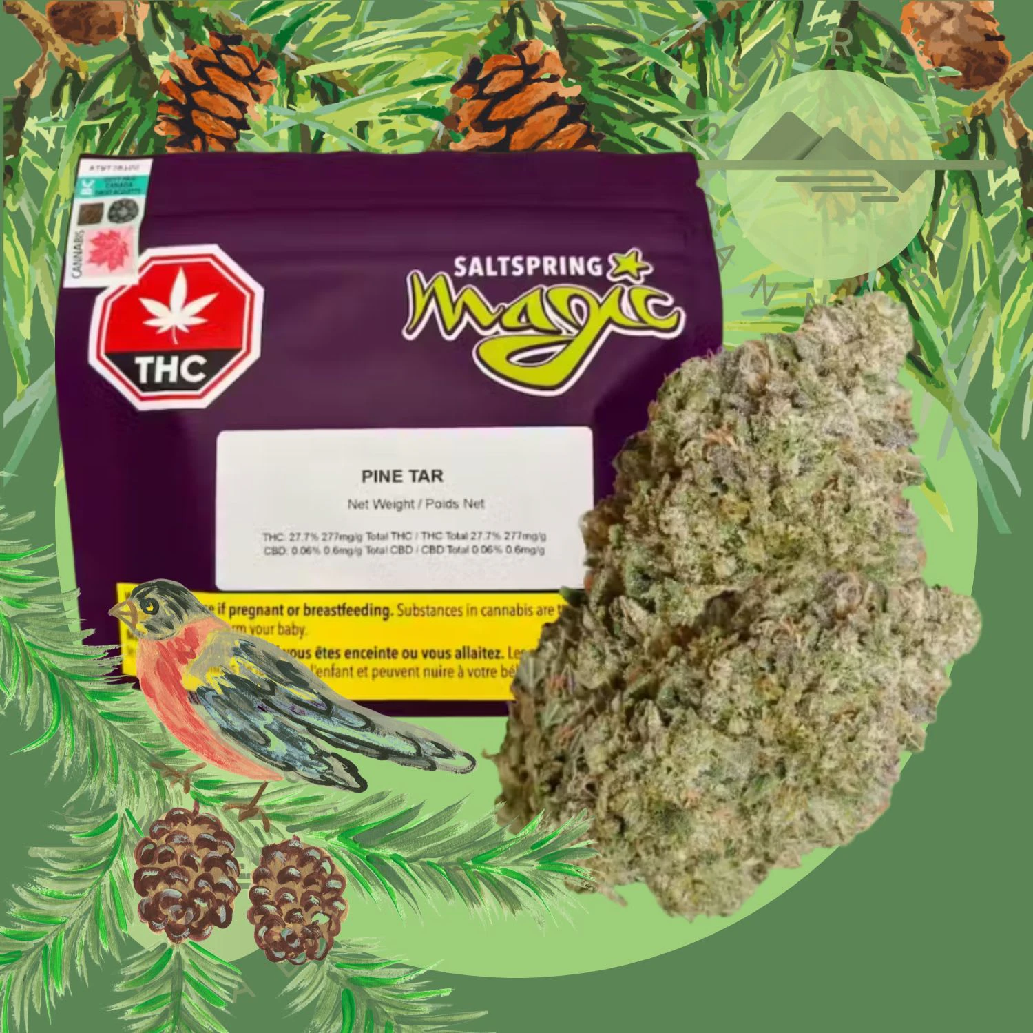 Saltspring Magi's "Pine Tar" - an aromatic journey from the lush landscapes of Saltspring Island, Canada, encapsulated in a 7g package of pure bliss. Pine Tar captures the essence of Saltspring's untamed beauty, thriving under the island's sun and rain. This 7g masterpiece is a tribute to the pristine environment that nurtures every bud. Whether you're a local or a global enthusiast, savor the spirit of Saltspring with this exceptional strain.