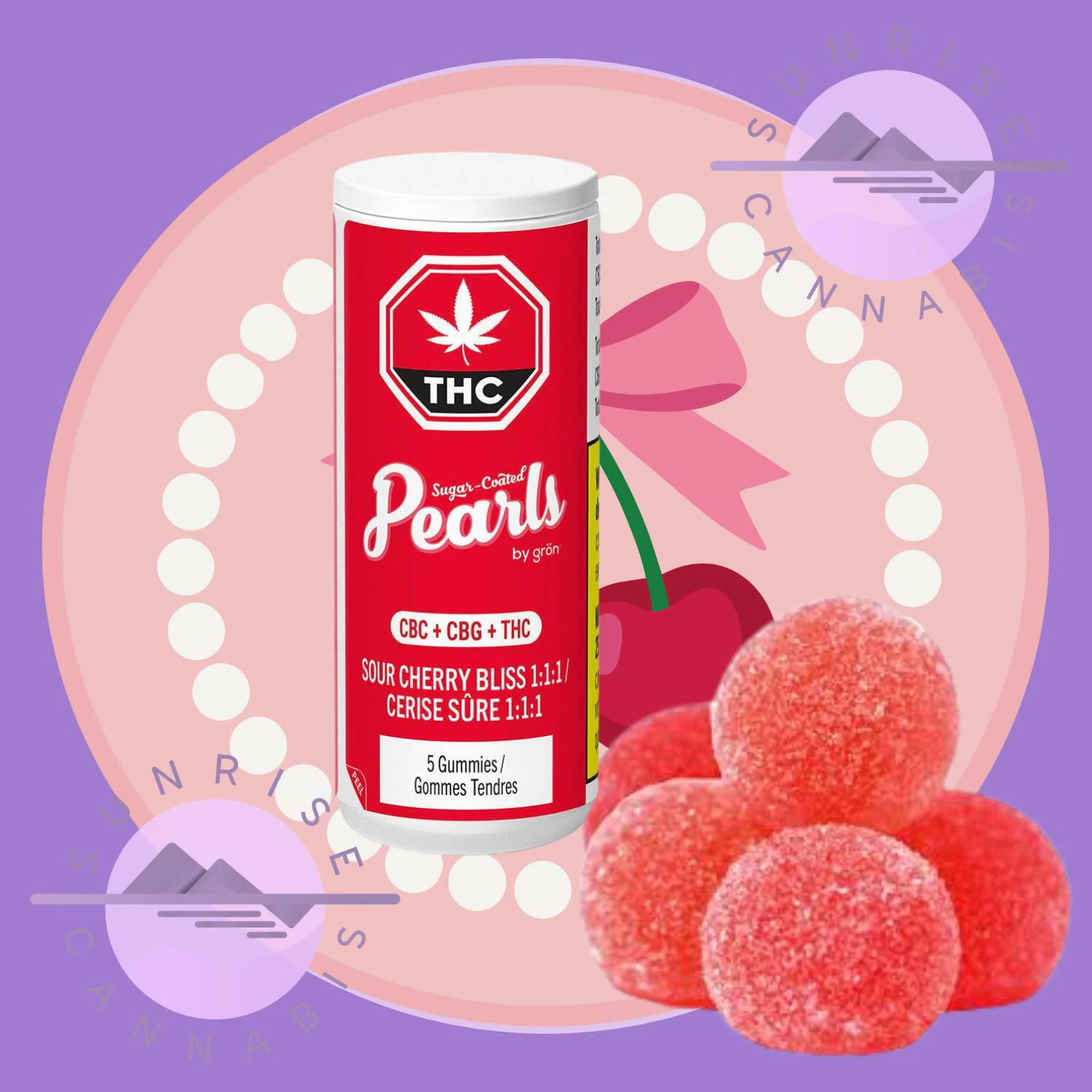 GUMMIES - THC+CBG+CBC - 5x (2mg THC + 2mg CBG + 2mg CBC) Pearls Sour Cherry Bliss combines a melody of CBC, CBG and THC in a 1:1:1 ratio to create a beautiful bouquet. Each sugar-coated soft chew has 2 mg of CBC, 2 mg of CBG and 2 mg of THC.