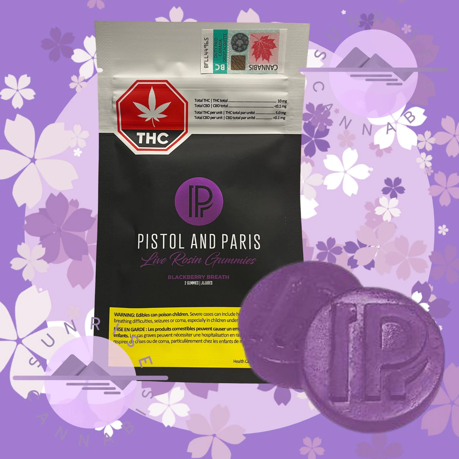 Crafted in small batches, our solventless live hash rosin gummies are infused with premium Pistol and Paris flower, each mindfully paired with the perfect matching flavour and finished with the Pistol and Paris logo on top. Package contains two delightfully chewy, mouth-watering gummies with a pleasant full body effect.