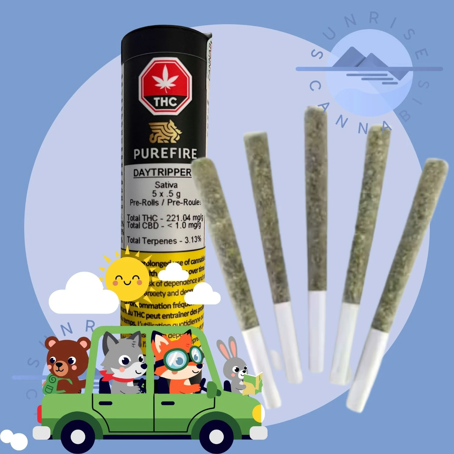 A longtime favourite at Purefireco, Day Tripper is a sativa-dominant cultivar known for its uplifting effects and distinct aroma—think fresh tennis balls meets dried mango. With a terpene-rich profile led by myrcene, followed by pinene and limonene, this five-pack of pre-rolls delivers a smooth, mellow flavour with herbal and fruity notes layered over a crisp pine finish. Expect a forest-fresh tang that's ideal for easy daytime sessions.