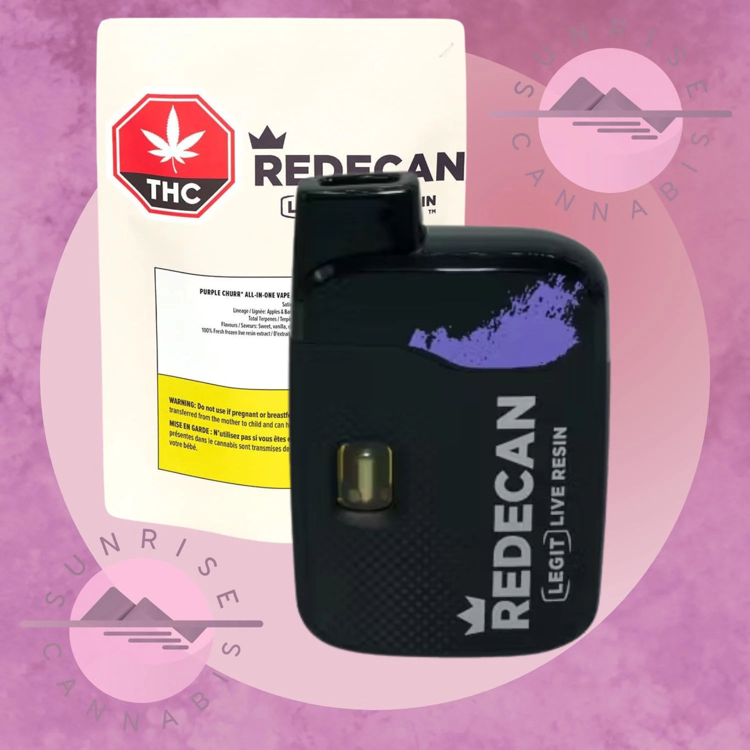 Purple Churr* Legit Live Resin All-In-One Vapes feature full-spectrum extract derived from one ingredient: fresh Purple Churro flower frozen at the optimal harvest time. They preserve the unique essence of the live flower using a butane extraction process to refine it into a live resin extract with 1,000mg THC per 1.2g device, 80-83% THC, and remarkable flavour, colour, and consistency. No added terps or cannabinoids, shortcuts, or fillers – just the full character of Purple Churro in an all-in-one vape.