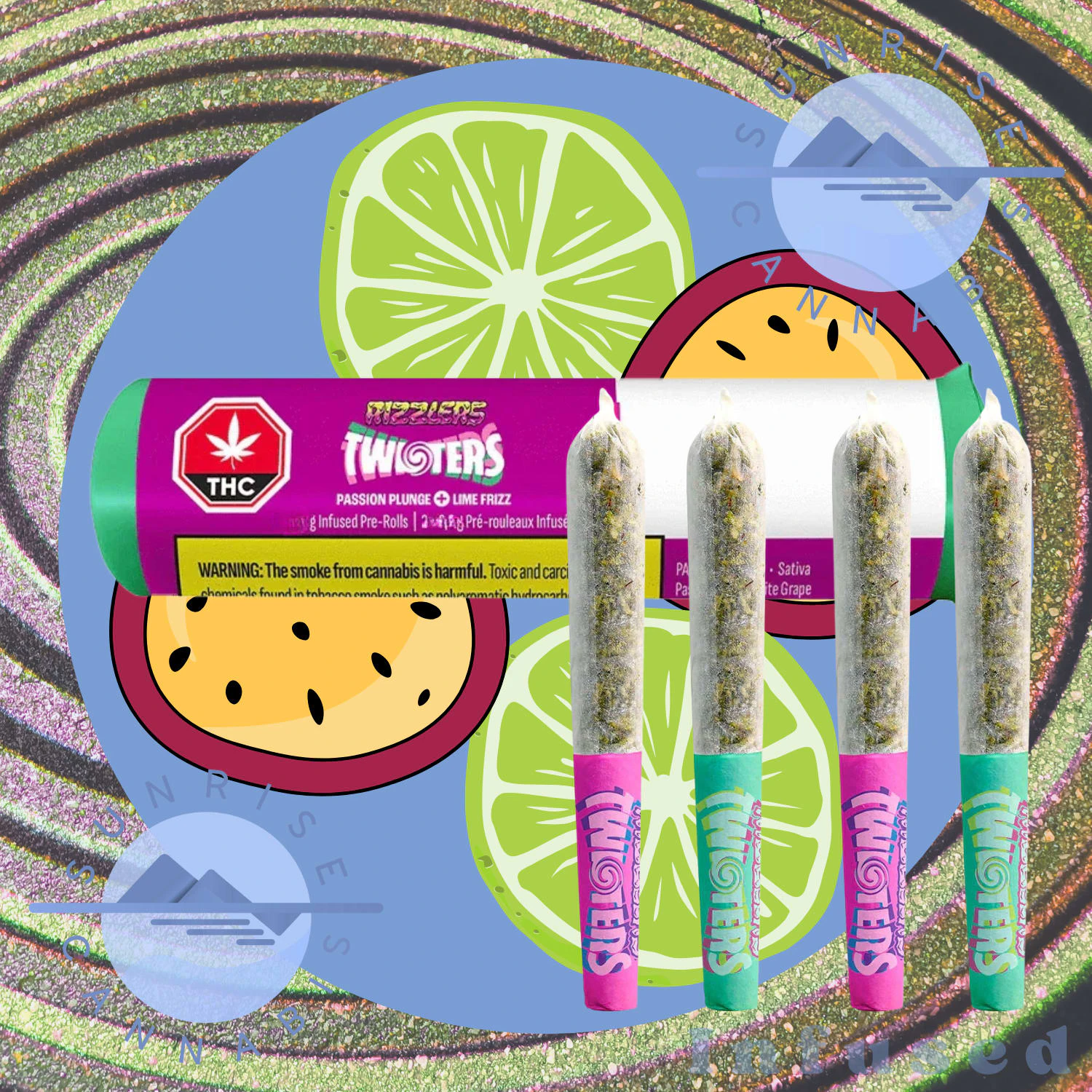 Don’t sleep on this 2 x 2 multipack of 0.5 g infused sativa pre-rolls, rolled to perfection and expertly coated in kief for an extra kick of potency. Pairing bold Passion Plunge hits of passion fruit and white grape with the fresh Lime Frizz blast of tropical citrus, each pack features a duo of mind-blowing flavours from custom botanical terpenes and quality distillate.