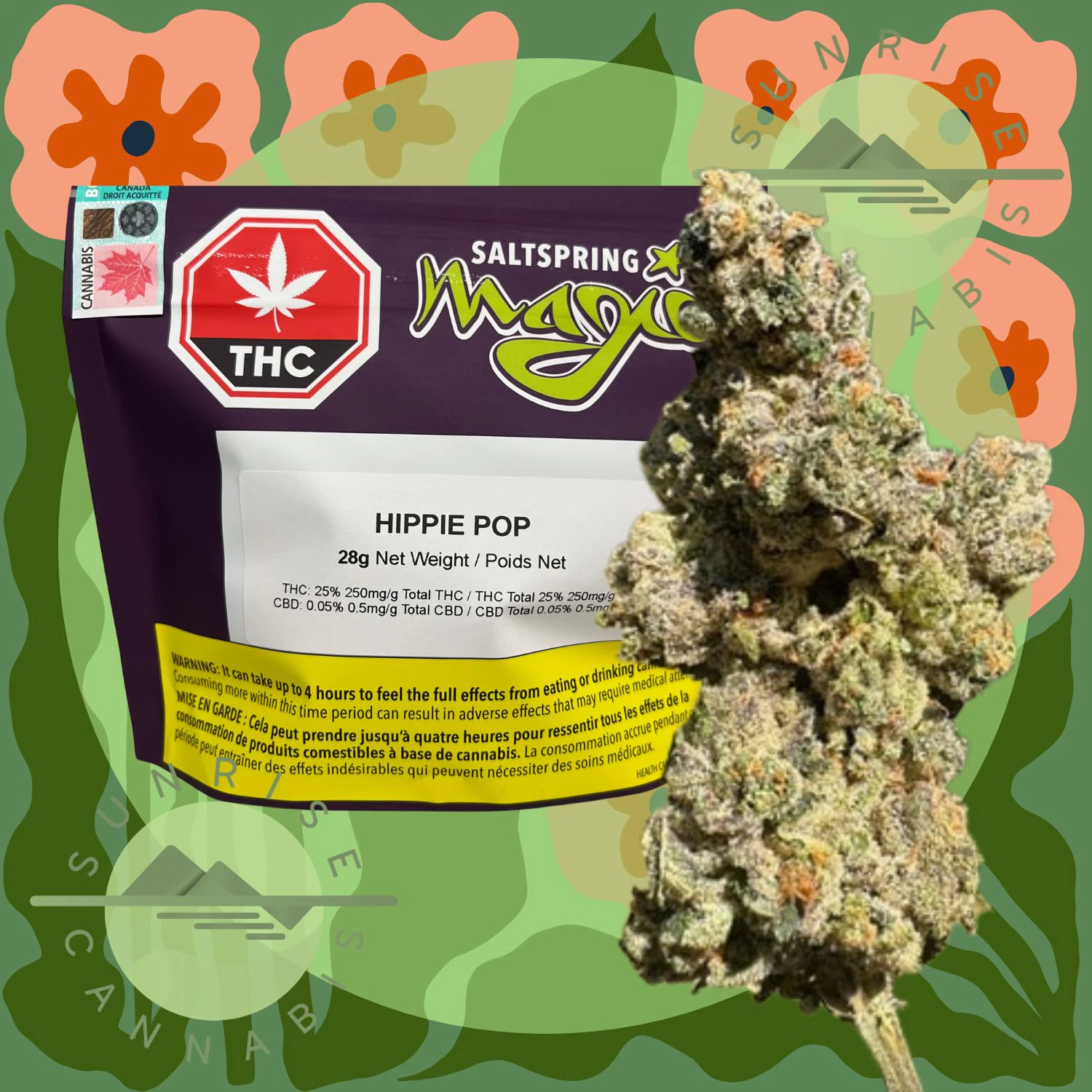 This Indica Dominant Hybrid has deep green and purple, classic tree shaped flower with vibrant orange pistols and white trichomes. This is a Heat Hunters breed that has an aroma of sweet berries, citrus, apples with undertones of fuel. The flavor comes through sweet with hints of berries, grape and fuel. Modern Cannabis breeding from Vancouver Island combined with The Magi's experienced cultivation and curing creates a flavorful and smooth smoking experience.