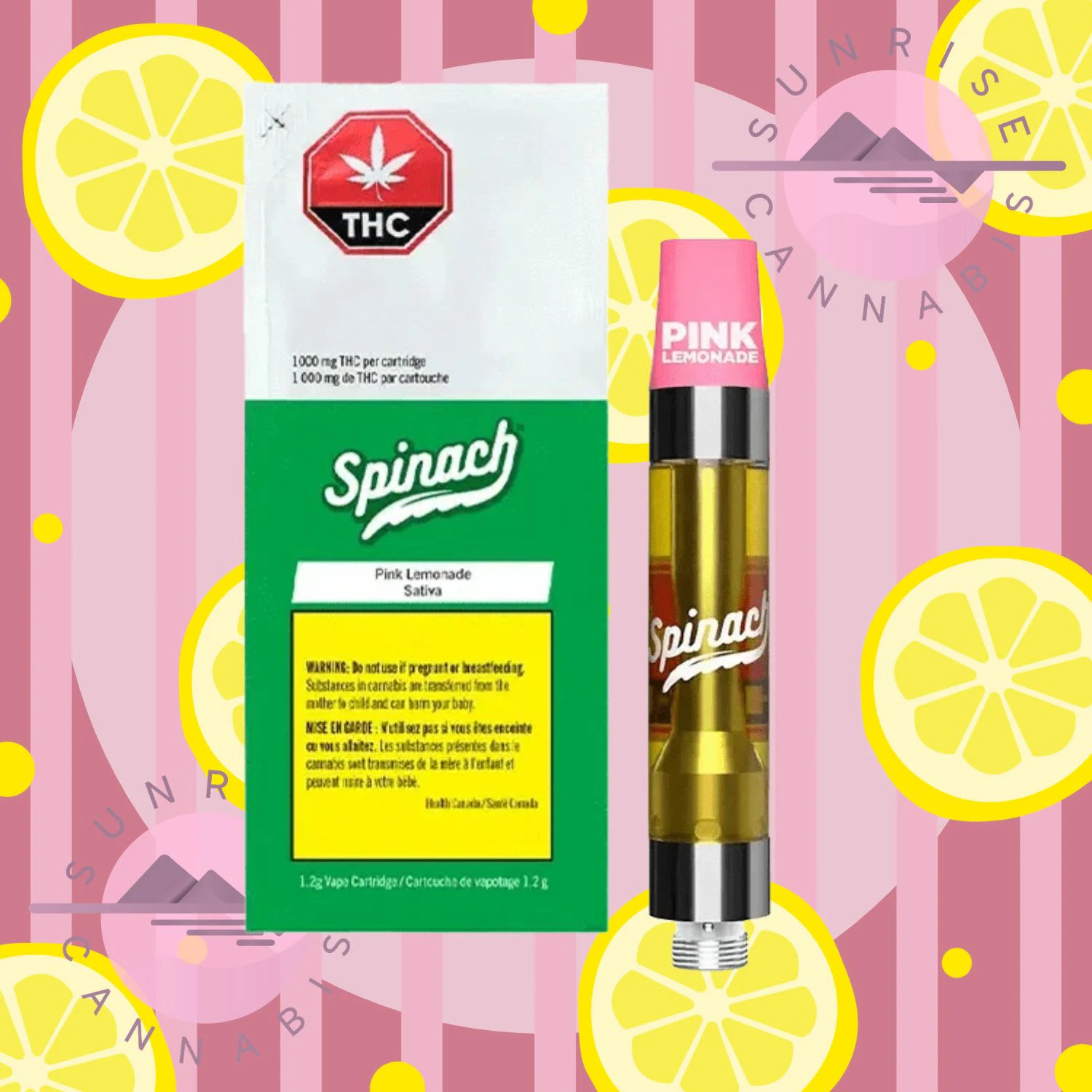 Get that summertime, thirst-quenching flavour in one delicious vape. Inspired by the strain Pink Lemonade, which has a Lemon Skunk and Purple Kush lineage, this vape is full of sweet raspberry and refreshing lemonade flavour notes. With some of the finest cannabis extract and aerosol-tested vape carts, Spinach leveled up the potency with 1000mg THC per cart. Which means bigger hits and bigger flavour.