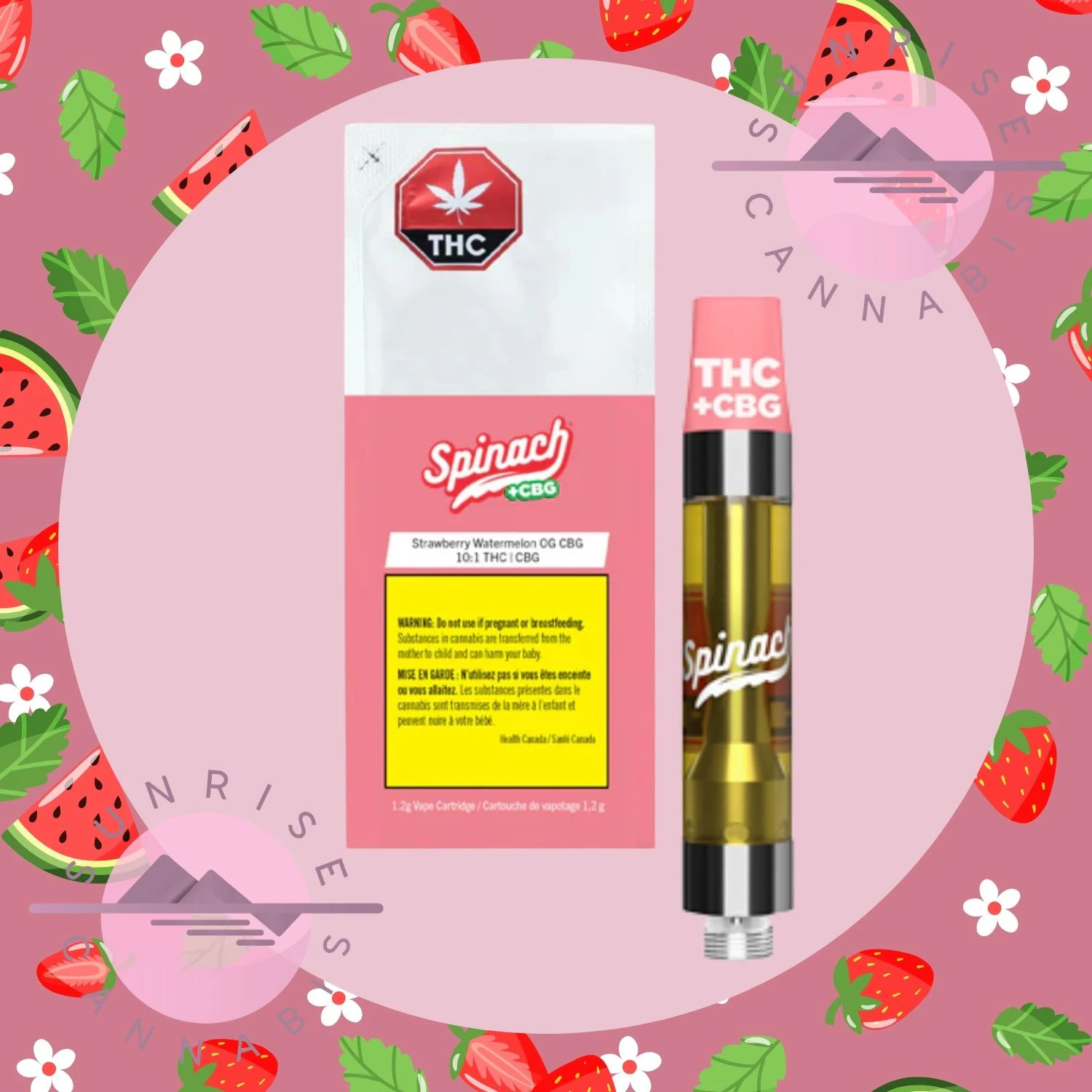With a refreshing splash of strawberry and watermelon flavour notes, the Spinach Strawberry Watermelon OG CBG 1.2g Vape is inspired by the Strawberry Watermelon OG cultivar and a 1:10 CBG:THC ratio. This vape has been formulated with distillate and botanical terpenes.