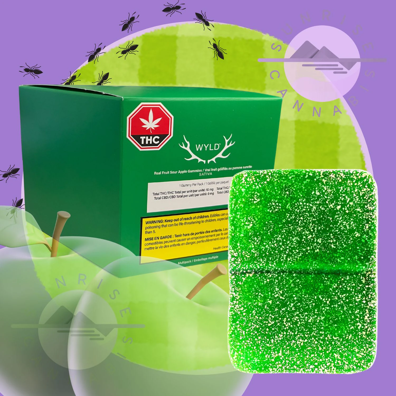 GUMMIES - 10x 10mg THC ?Wyld's mouth-watering Sour Apple gummies are infused with THC and Sativa terpenes for a vibrant, uplifting high.